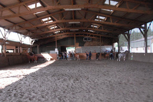 Les manèges en commençant par le petit manège, réservé généralement au shets et aux cours poneys B, l'hivers vous pourrez aussi y rencontrer quelques poneys de sport s'entraîner dans un mouchoir de poche :